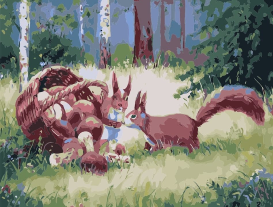 Рисуване по номера - "Катерички в гората" - 30х40 см.